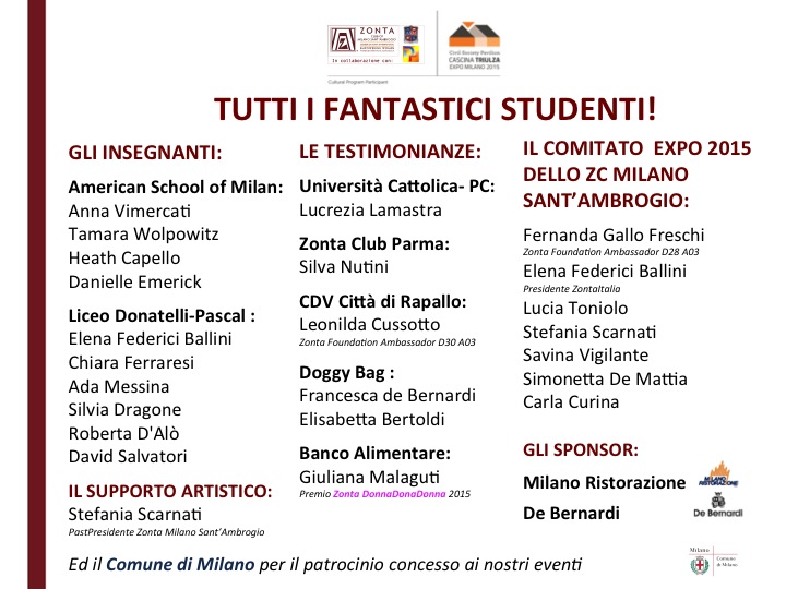 10 ottobre 2015: Giornata Zonta presso EXPO2015 http://www.zontamilanosantambrogio.eu/10-ottobre-2015-zonta-%c3%a8-presente-in-expo/Zonta International e-Newsletter January 2016