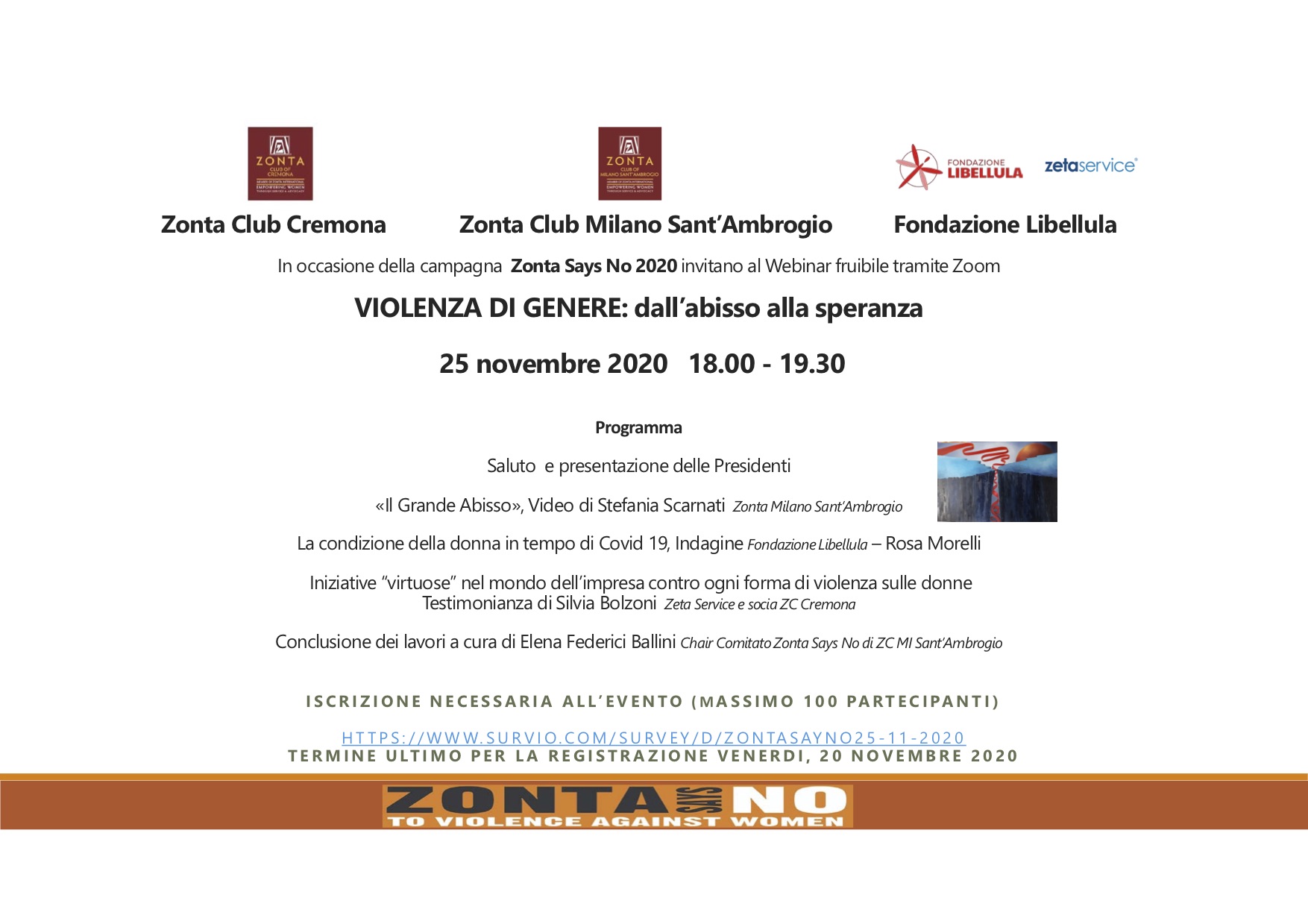 ZONTA SAYS NO – Zonta Cremona_Zonta Milano_Fondazione LIBELLULA[1] Zonta Club Milano S.Ambrogio 16 novembre 2020